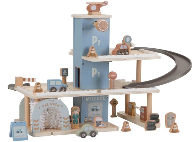 Parkeer, tank en race! Deze houten speelgoedgarage is de perfecte uitbreiding op de Little Dutch Treinbaan XL. De garage heeft een begane grond met een carwash, twee parkeerdekken en een…€ 69,95 € 49,95Aanbieding